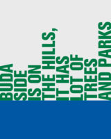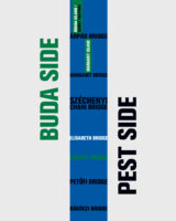 His approach reduces Budapest's topography—its roads, bridges, geographical, and architectural landmarks—into abstract symbols and text. For instance, the Danube becomes a long blue stripe, while the city's iconic curved tram line is depicted as a yellow arc. Buda is portrayed as greener and more hilly, while Pest is flat and more densely built, with the two sides divided by the flowing Danube.