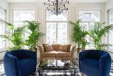 The interior design reflects classical elegance, with the brand’s colors – dove gray, imperial blue, and light blue – partly featured in the furnishings. These same colors are also incorporated into the brand elements, such as in the stationery, maintaining a consistent visual identity throughout.